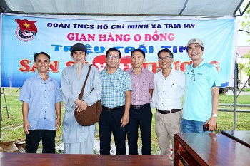 Thầy Thích Nhuận Tâm (thứ 2 trái qua) cùng các đơn vị tham gia tại phiên chợ 0 đồng