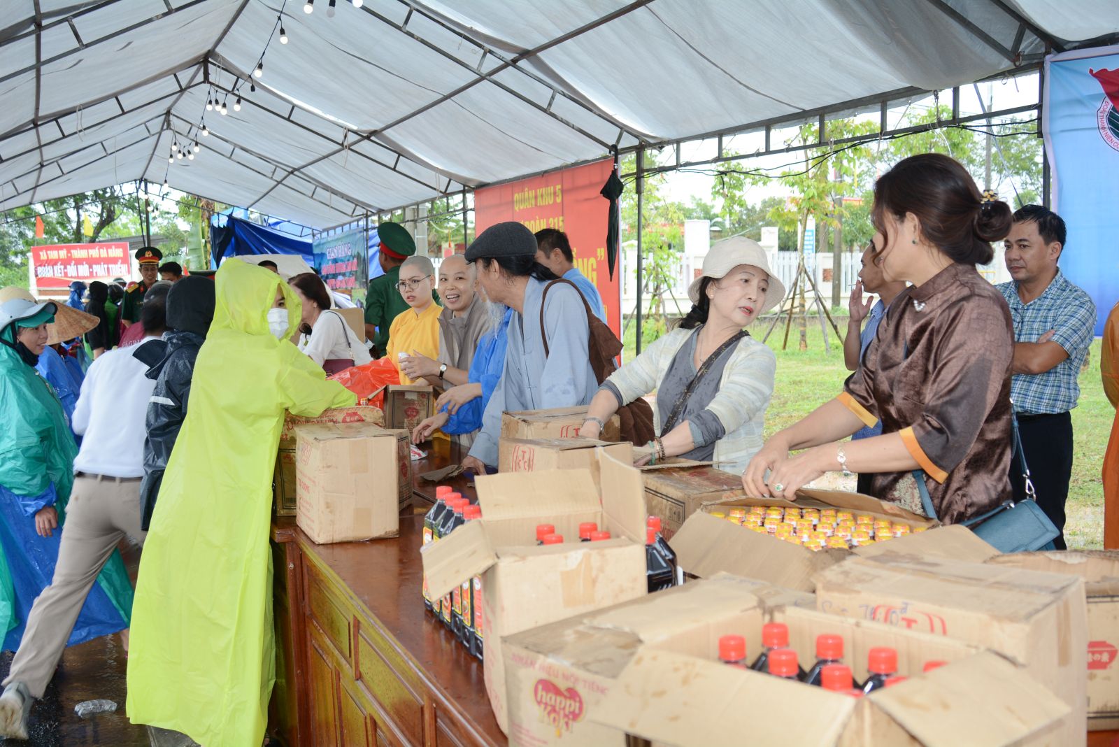 Được biết, mỗi mặt hàng có số lượng trên 300 sản phẩm gồm:đường ăn,mì chính,dầu ăn, gạo, bánh trung thu,lồng đèn, áo quần mới….để chia sẻ cùng người dân địa phương. Dưới cơn mưa lớn, đoàn xe của trung đoàn 134 thuộc sư đoàn 315 chở đầy ắp nông sản do đơn vị sản xuất cũng kịp thời đưa đến chợ phiên. Bên cạnh đó, đoàn thanh niên xã Tam Mỹ cũng hăng hái xếp đặt những phần quà chờ phát cho những người dân có hoàn cảnh khó khăn, hội đồng hương Tam Mỹ phía nam cũng đem 15 chiếc xe đạp về tặng cho các em học sinh vượt khó. Trong đó, phải kể đến sự góp sức của rất nhiều doanh nhân xa xứ cũng trở về ủng hộ cho quê nhà như doanh nhân Trần Quốc Hùng, Chủ tịch HĐQT - Tổng Giám đốc Công ty CP Kỹ Nghệ Toàn Cầu.